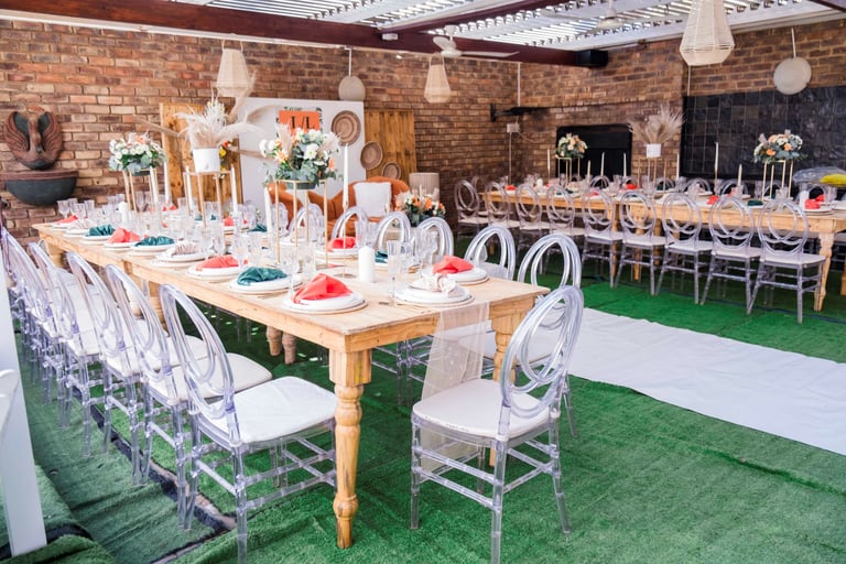 The atmosphere at their celebration was warm and inviting, blending rustic charm with cultural depth. Wooden tables adorned with fresh flowers created a natural, welcoming setting. This thoughtful mix of contemporary and traditional decor reflected how the couple honors their heritage while embracing modern life, setting a tone of respect and celebration that covered everyone present.